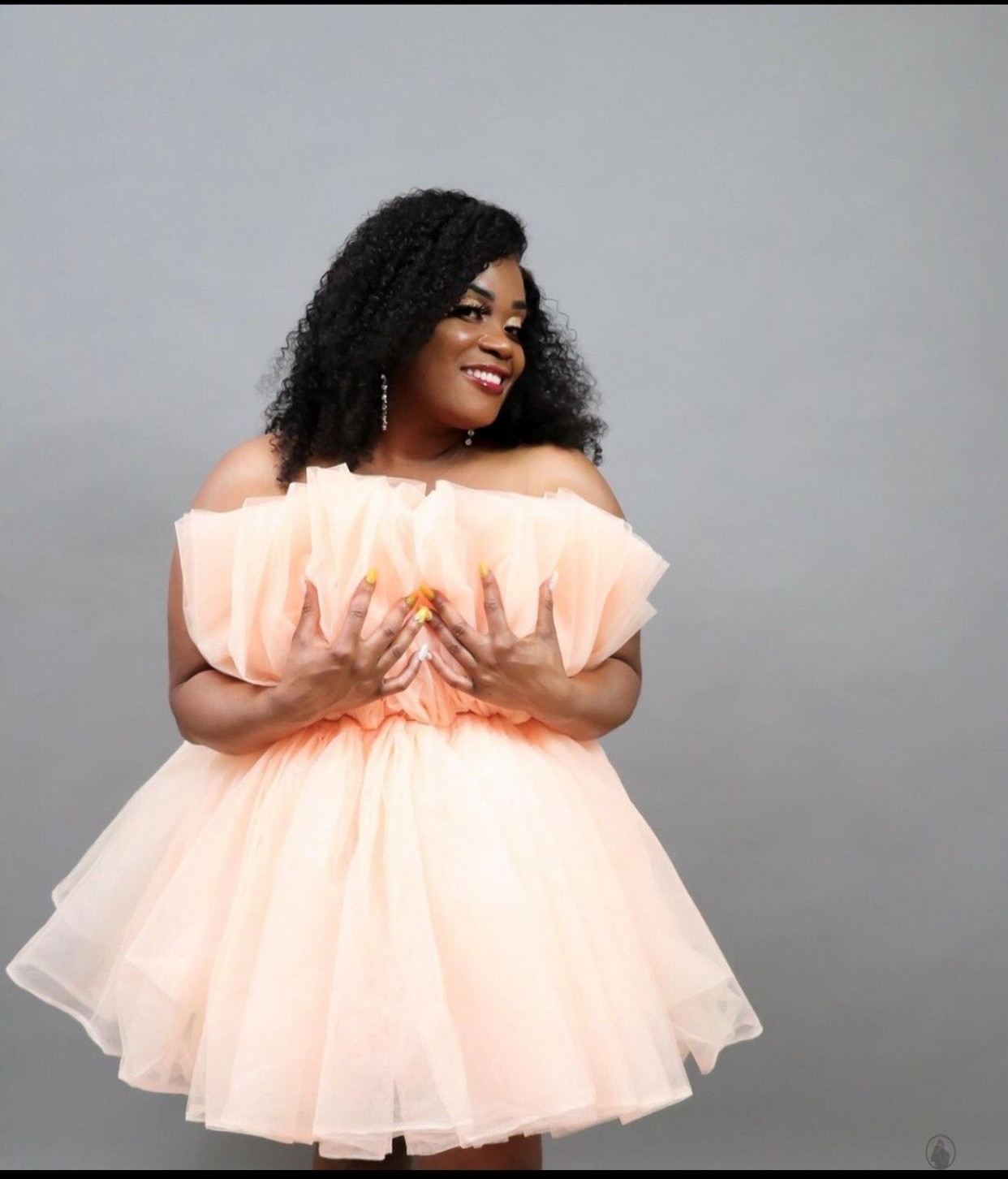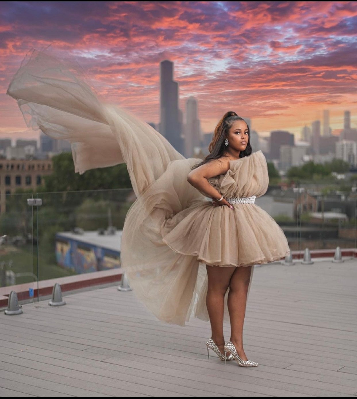 Exotic hi-low Tulle dress with detachable train can be worn in two ways.